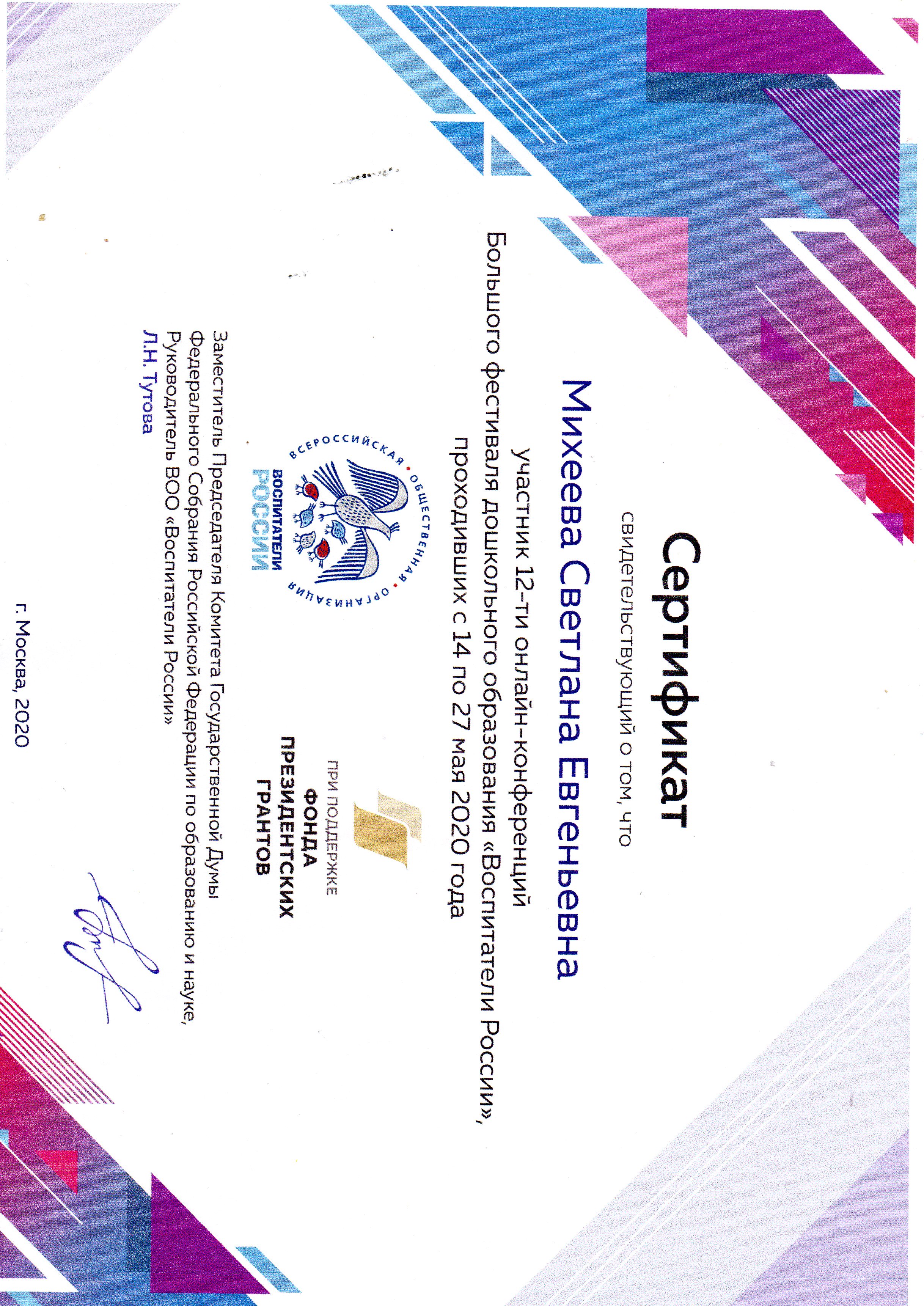 Сертификат участника мульт-разминки "Мульти-Пульти" 2021 год
